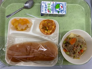 豚肉と野菜のカレースープ煮 変わりピザ ミックスフルーツ(缶)