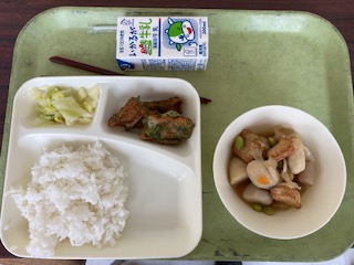 ちくわのいそべあげ あつあげとさといもの煮もの あっさりキャベツ
