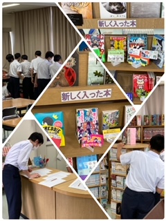 阿倍野中学校の学校図書館が本日より開館いたします。お昼休みに子どもたちが図書室へ集まり、本を閲覧したり、借りたりしました。「本に親しむ」人になってほしいと願っております。