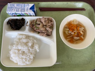 豚肉のごまみそ焼き すまし汁 のりのつくだ煮