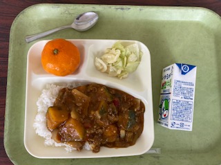 夏野菜のカレーライス キャベツのサラダ みかん(冷)牛乳