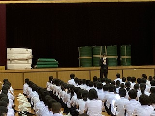 1学期終業式を体育館で行いました。校長先生から「この夏休み、各自が家族の方と相談しながら自主的に行動をとるように努めてください。」とお話がありました。1か月余りの夏休みを有意義に過ごして一回りも二回りも成長した姿を見せてください。