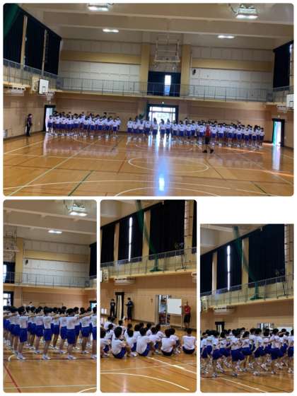 1、2時間目は1年生の体育大会学年練習が行われました。