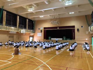 3年生は、1時間目に来週から始まります修学旅行に向けて、体育館で修学旅行のしおりの読み合わせと隊列の確認を行いました。