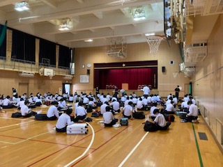 5時間目、3年生は体育館で修学旅行の事前指導を行いました。いよいよ月曜日から出発します。最後の確認をしっかりしました。
