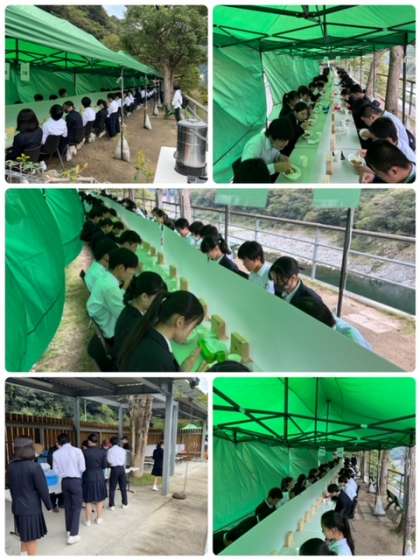 琴平市内の散策を終えた子どもたちは昼食です。カレーライスをいただきます。
