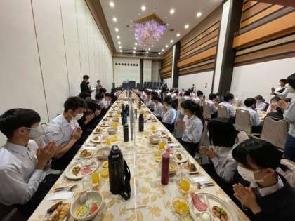 子どもたちは午前7時に起床して、3日目のプログラムに備えてしっかりと朝食を摂ります。