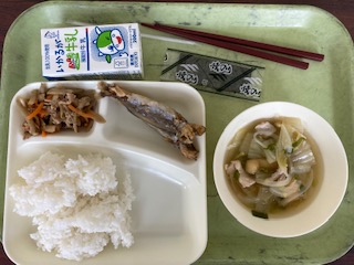 ししゃものからあげ 五目汁 きんぴらごぼう