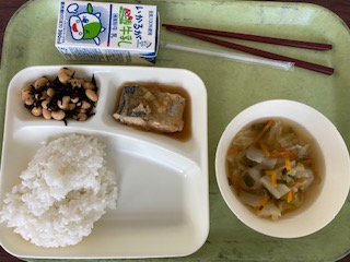 さごしのおろしじょうゆかけ さといものすまし汁 大豆の煮もの