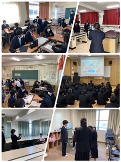 2年生は土曜授業でリモート職場体験においてのCM動画の作成に取り組みました。