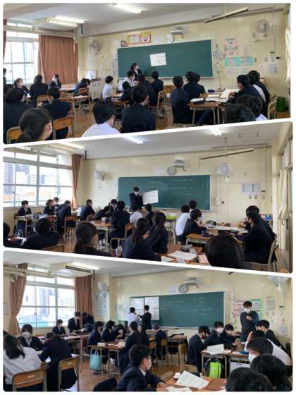 1年生は昨日の職業体験講座のまとめとさて各クラスで職業について発表を行いました。