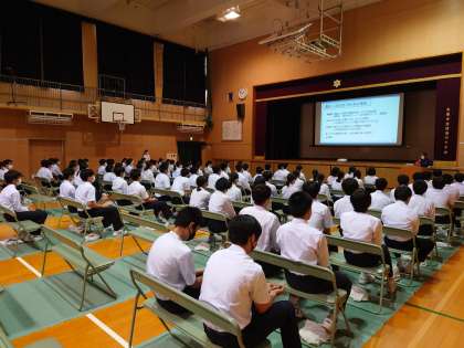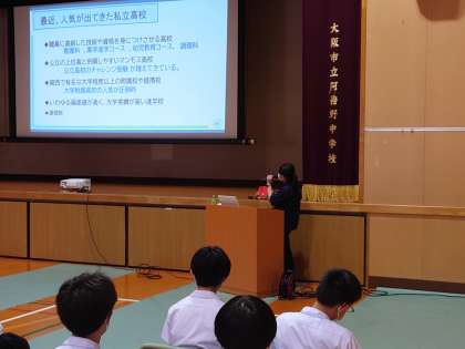 進路指導の徳山先生から生徒対象の進路説明会をしていただきました。