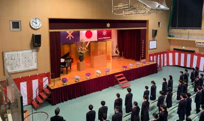 開式のことばのあと、国歌斉唱・校歌演奏。