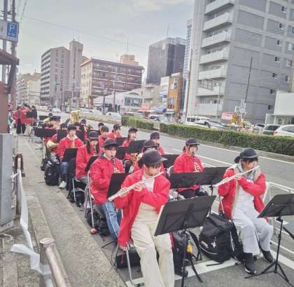 吹奏楽部は昭和町駅前で大阪国際女子マラソンの応援演奏を行いました。