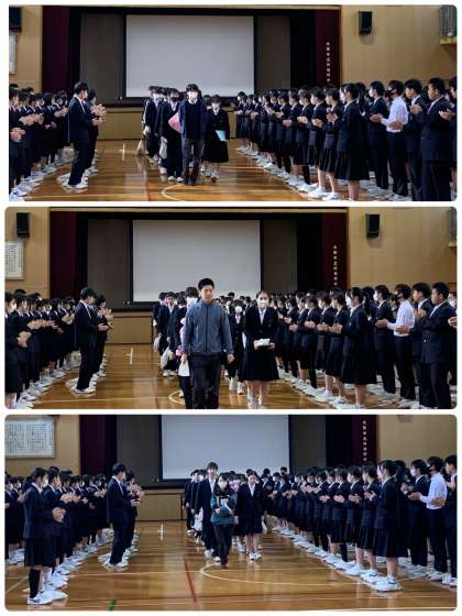 1.2年生の花道を通り、三年生が退場です。