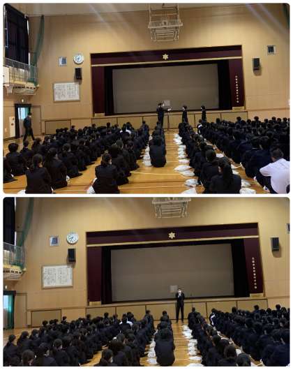 みなさんこの1年で大きく成長しました。4月からは1つ学年があがり、阿倍野中学校の伝統をひきつぎ、さらによき学校になるようにがんばってください。
