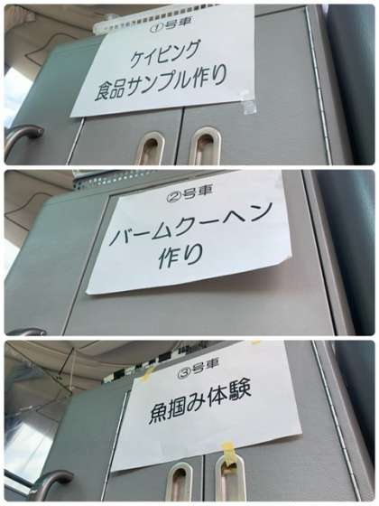 午後の活動の時間になりました。 各号車に分かれて体験場所に移動します。