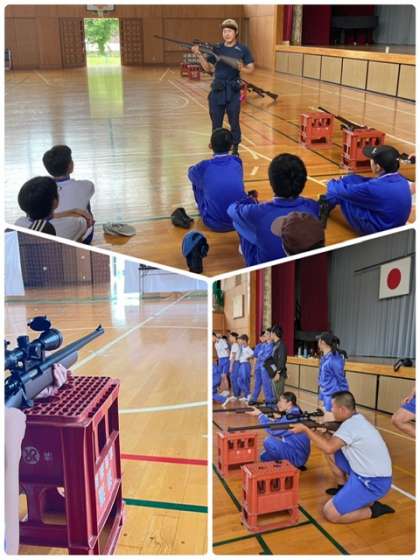 こちらは「猟師体験」のグループです。 使い方を学んで的を狙います!
