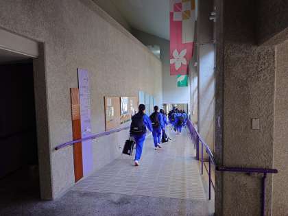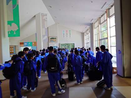 2階ロビーで集合し、野外炊飯の注意事項を確認します。