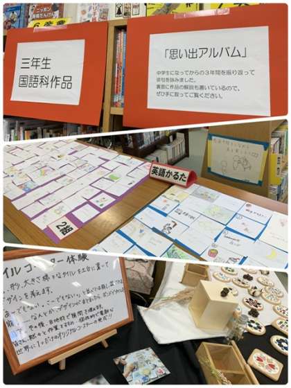 3年生国語科、1年生英語科、PTAの方々の作品です。みなさんの素晴らしいアイデアが作品となっております。