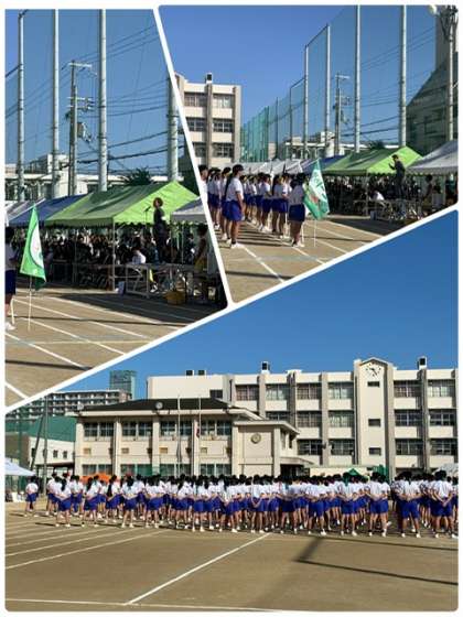 開会式(国旗、校旗掲揚 学校長挨拶、PTA会長挨拶)