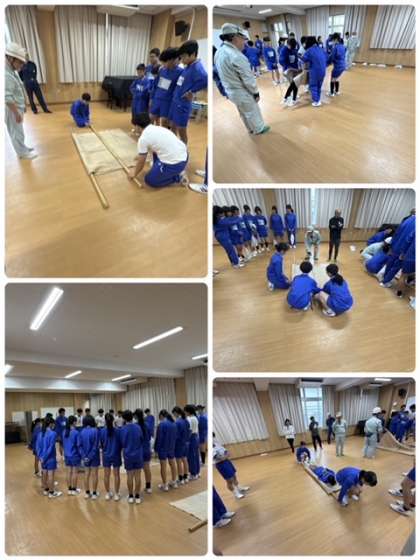 応急担架を作成した訓練を行いました。