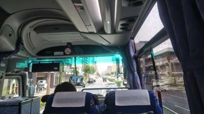 バスに乗車しました。 いよいよ出発です! たくさんのお見送りありがとうございました!