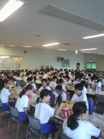 残念ながら、集合写真を撮ったあと、雨が降ってきたので、食堂で昼食です。