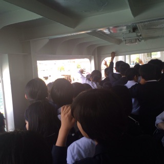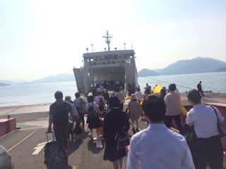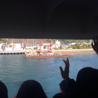 フェリー乗船しました。たくさんの皆さんにお見送りをいただき、島を離れました。