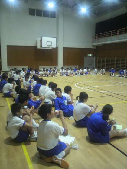 キャンドルファイヤー(スタンツ、クラスリクレ)も終わり、みんなで補食をいただきました。みんな元気です。
