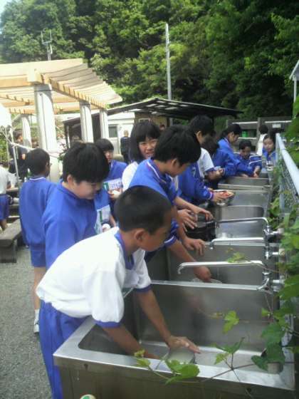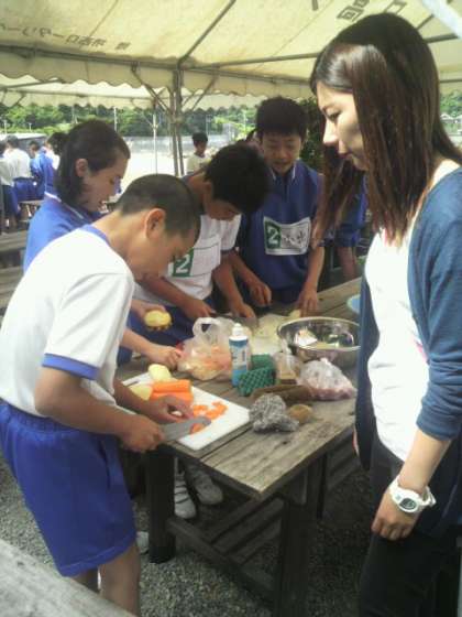 飯盒炊飯(カレーライス作り)が始まりました。午前9時です。天気は晴れです。みんな元気です。