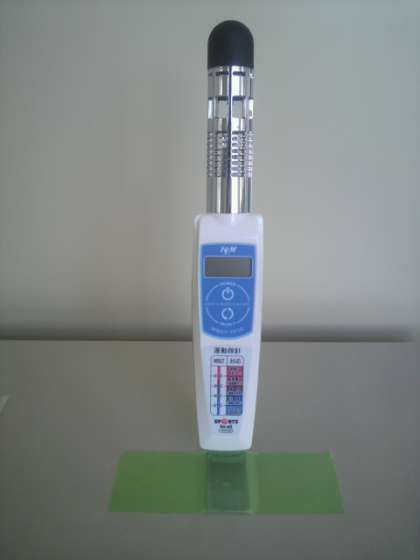 先日のPTA実行委員会で校長先生がお話された黒球式熱中症暑さ指数計の実物の写真です。取り外しがきくので、見れない時もありますが、通常、校長室の前に置いてあります。