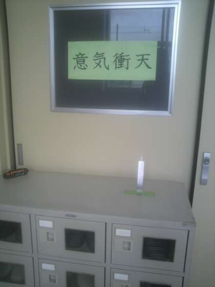 話はかわりますが、昨日の全校集会で校長先生が紹介された4文字漢字が校長室の入口扉のガラスに貼ってあります。「意気衝天(いきしょうてん)」は「意気込み(気合い)が天をもつらぬく」という意味です。2学期にはさまざまな行事があります。天をもつらぬくぐらい気合いを入れてがんばってください。