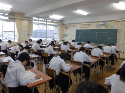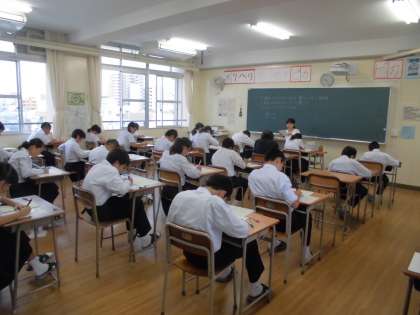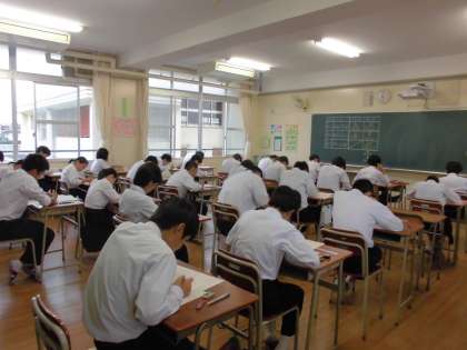 10月12日(木)中間テスト2日目は、理科・英語・社会のテストがありました。(写真上から、1年2組、2年2組、3年2組です。)