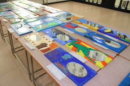 2年生「生き生き生き物鏡」(彫刻)