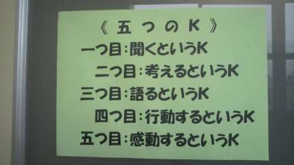 11月20日(月)全校集会で、校長先生から、「5つのK」についての講話がありました。明日から、期末テストが始まりますが、日頃から、「5つのK」を大切に過ごしてほしいと思います。(校長室前に掲示)
