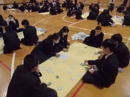 2月2日(金)5,6限目に、体育館にて、1年生百人一首大会が開かれました。みんな、とても真剣にがんばっていました。何組が優勝するのか楽しみです。