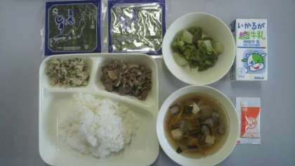 3月7日(水)卒業祝い献立は、手巻きご飯(牛肉の甘辛煮、ツナソテー)・すまし汁・和なしの抹茶クランブル・牛乳でした。