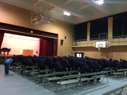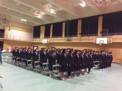 午前中、3年生は体育館にて卒業式の練習を行いました。