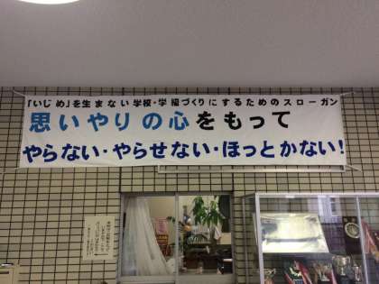 今日は、全市すべての公立小中学校で、『いじめについて考える日』として、さまざまな取組みが行われました。本校においても、校長先生より、全校集会で講話がありました。そのなかで、チーム阿倍野の力を結集して、スローガンのなかの「(いじめを)ほっとかない!」を特にお願いしたいというお話がありました。今年の1月15日に発表されたいじめ撲滅宣言
