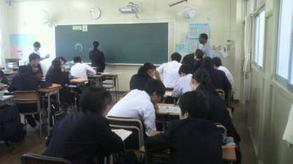 5月11日(金)今日は3年生の英語の授業にC−NETのパウエル先生が来られました。みんな楽しそうに授業を受けていました。
