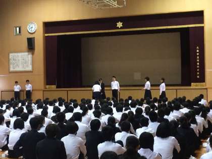 全校集会にてエコ表彰が行われました。