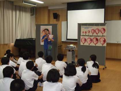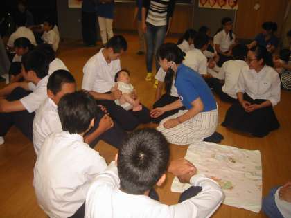 6月22日(金)2限、3限、5限で、2年各クラスごとに、いのちのわ ふれあい授業が行われました。初めて赤ちゃんを抱く生徒もいたようです。