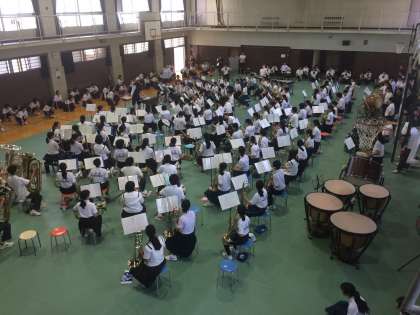 今日は最後の合同練習でした。今回演奏する曲の作曲家の先生もお越しいただき、暑さも吹き飛ばす、アツイ演奏を繰り広げていました。