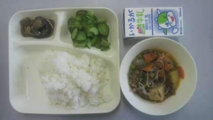 9月12日(水)給食の献立は、肉じゃが・焼きなすのみそだれかけ・あっさりきゅうり・米飯・牛乳でした。