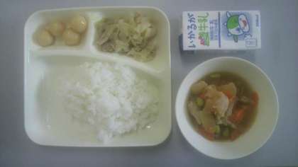 9月21日(金)給食の献立は、鶏肉とさといもの煮もの・豚肉とキャベツのいためもの・みたらしだんご・米飯・牛乳でした。★★お知らせ★★来週25日(火)の大なわとびの朝練はありません。