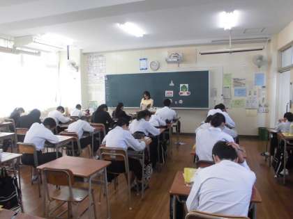 10月13日(土)土曜授業の様子です。1枚目は2年1組数学、2枚目は2年2組国語、3枚目は2年3組英語の授業風景です。