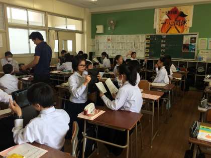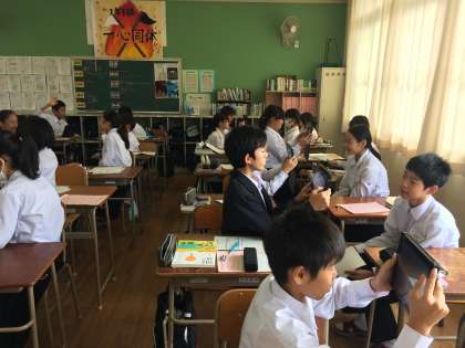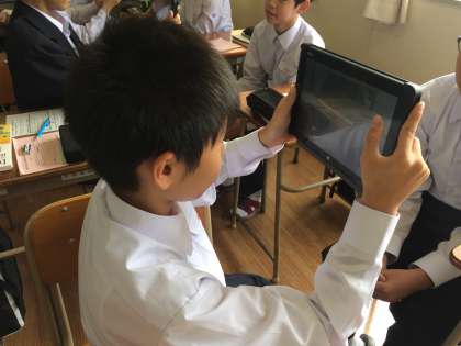 ICT教育の一環としてタブレット端末機を使用した授業を展開しました。ペアーになり動画機能を使い、録画しました。自分の発表を見ることで改善点が明確になったのではないでしょうか。