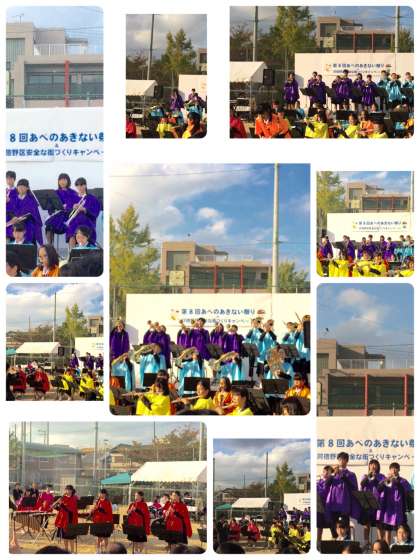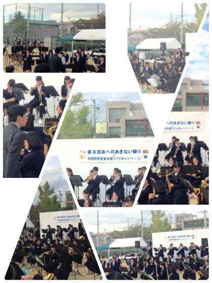 吹奏楽部が阿倍野区役所主催による「あきないまつり」で演奏しました。
