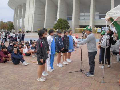 当日は天気も良く汗ばむぐらいで11月とは思えないぐらい陽気な中で、大会が行われました。阿倍野区の宝田区長をはじめ、阿倍野区青少年指導員連絡協議会のみなさん、各校PTAのみなさん、先生方、保護者のみなさんが出場する選手(生徒)のみなさんのために集まり、声援を送っていました。